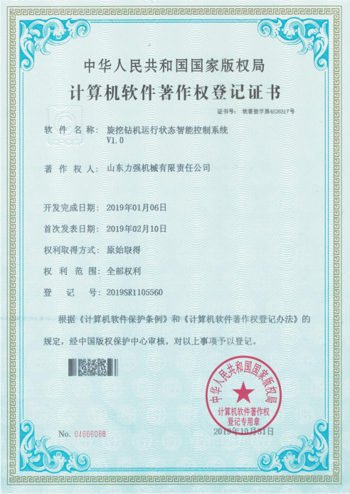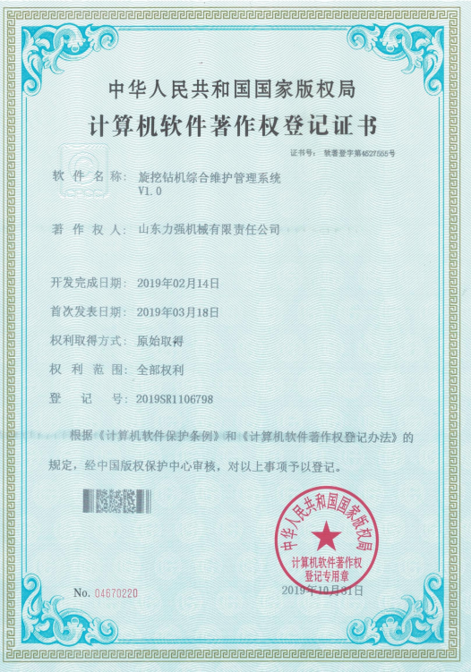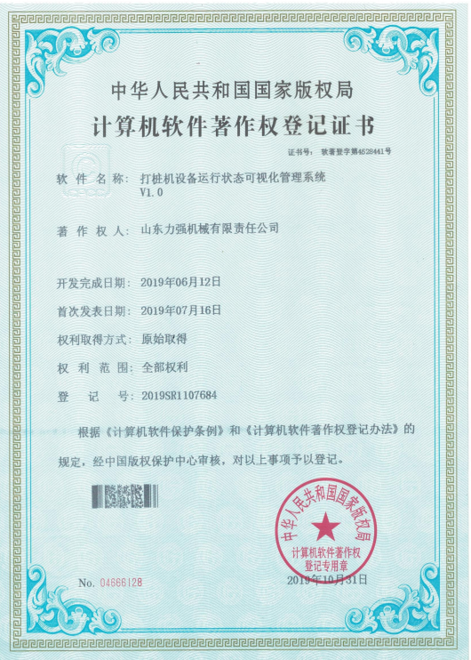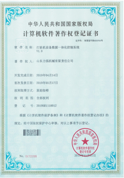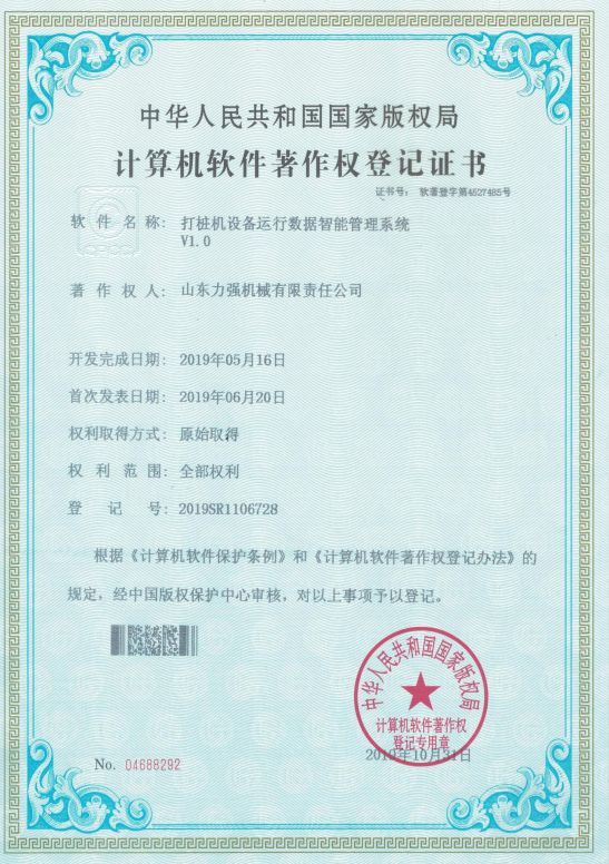 打桩机设备数据一体化控制系统V1.0 打桩机设备运行数据智能管理系统V1.0 打桩机设备运行状态可视化管理系统V1.0 旋挖钻机故障智能检测软件V1.0 旋挖钻机运行状态智能控制系统V1.0 旋挖钻机综合维护管理系统V1.0