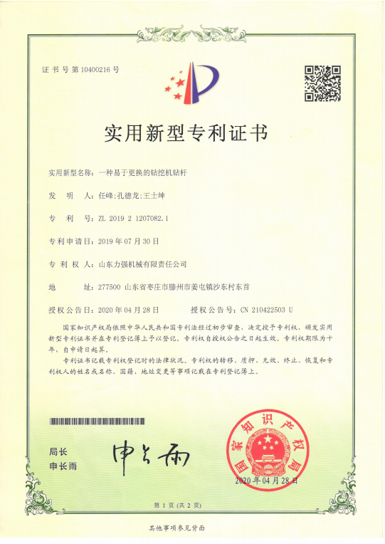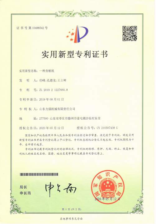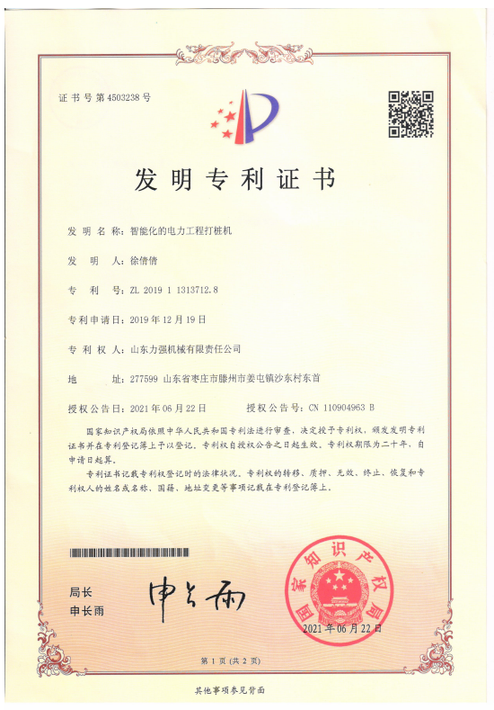 弹射打夯机授权发明专利 一种伸缩式机锁钻杆 一种通过改变运动频率从而改变孔距的智能钻孔机授权专利 智能化的电力工程打桩机